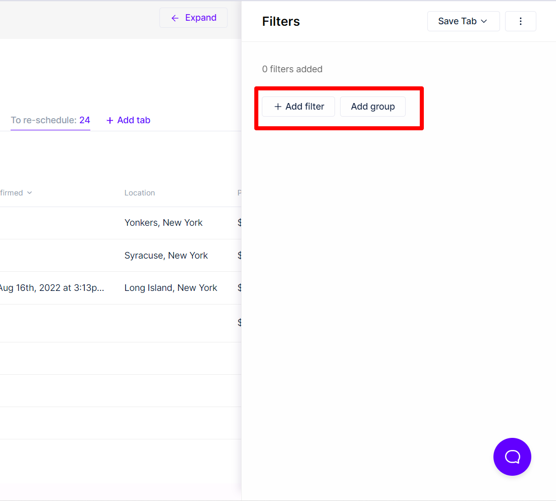 - From here, you can either Add filter or Add group.